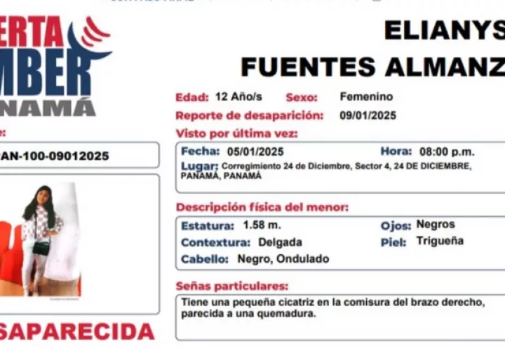Una nueva alerta Amber se ha encendido en Panamá este viernes 10 de enero, tras la desaparición de la menor Elianys Fuentes Almanza, de 12 años.