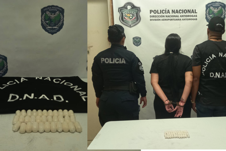 Un mujer de nacionalidad colombiana fue aprehendida por unidades de la Policía Nacional de servicio en la Dirección Nacional Antidrogas de servicio en la División Aeroportuaria, con presunta sustancia ilícita entre sus partes partes íntimas.