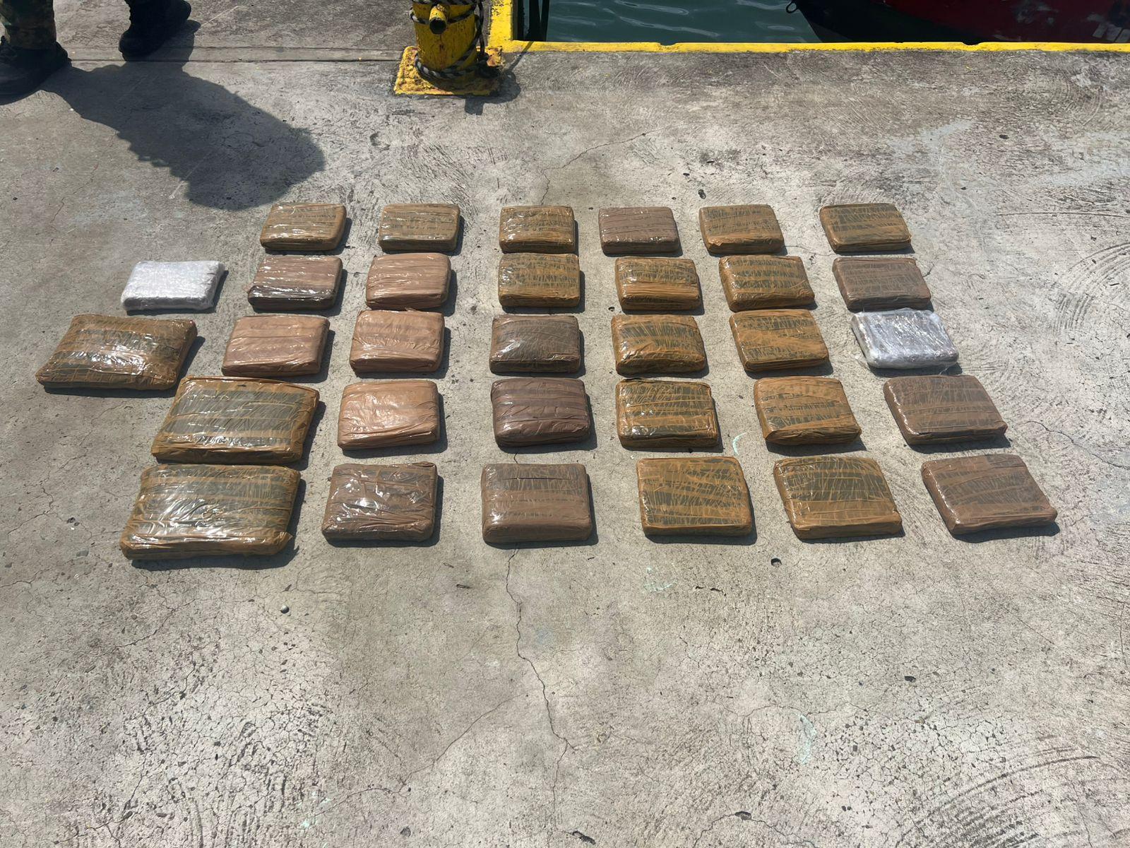 En esta isla, el Senafront logró detectar en manos de un panameño y un ciudadano colombiano, 32 paquetes de drogas, además de un cilindro de metal con trazos de tela que tiene indicios que sea sustancia ilícita.
