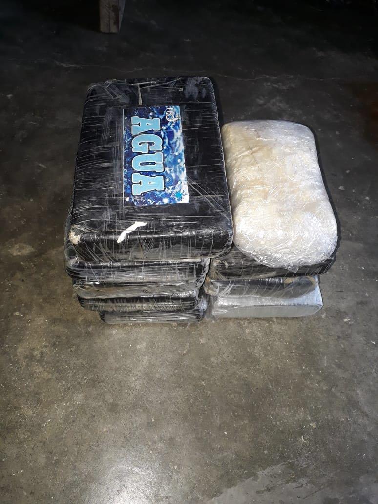 Los paquetes de droga empaquetados y dentro de una mochila, tenían un identificación que decía "Agua".