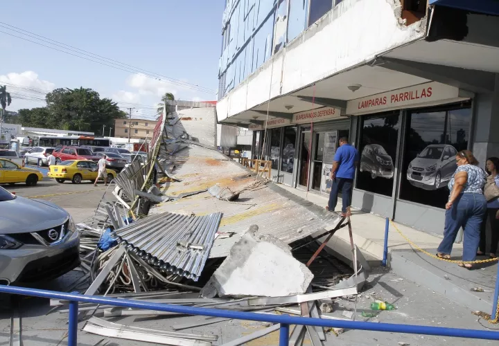 Un vehículo resultó afectado cuando una losa le cayó encima.