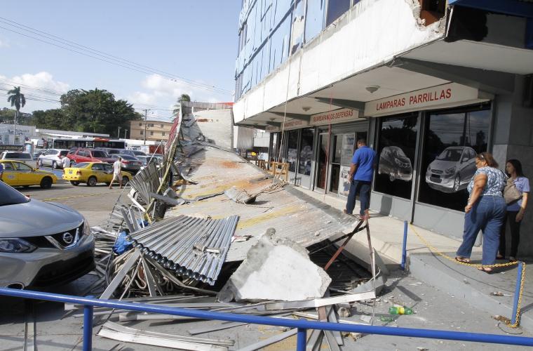 Un vehículo resultó afectado cuando una losa le cayó encima.