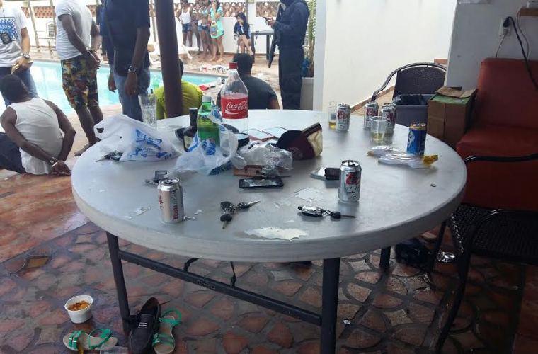 Los catorce varones con cervezas en manos y las ocho mujeres, entre los 18 y 25 años, que lucían sus vestidos de baño, quedaron congelados al ver que el recinto era ocupado por más de una veintena de unidades policiales que cubrían sus rostros con pasamontañas y portaban armas de grueso calibre.