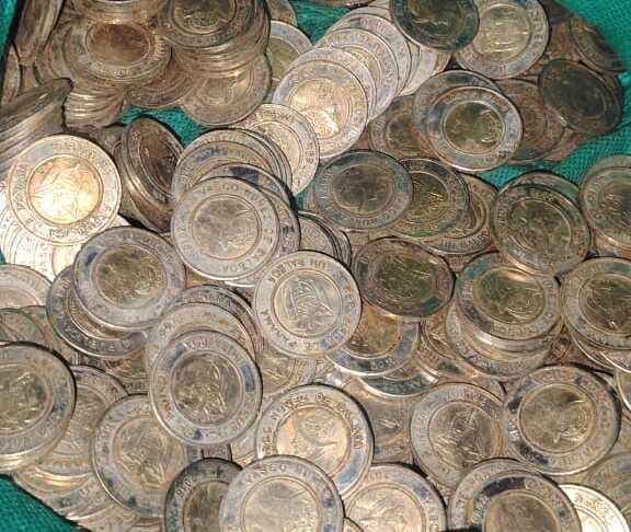 Durante la revisión en el área del hangar, los inspectores detectaron una bolsa verde y cuatro alcancías de colores rojo, azul y verde. En su interior había aproximadamente 2,000 monedas de un balboa, con características físicas irregulares que levantaron sospechas: acumulación de óxido, peso inconsistente y variaciones en el material, lo que podría indicar su falsedad.