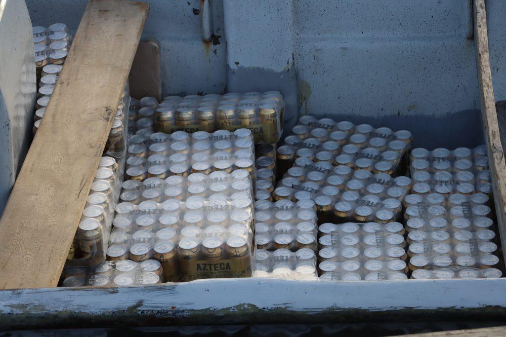 Tras su traslado a la sede de la Segunda Brigada Caribe y la verificación correspondiente, se contabilizaron 100 cajas con un total de 2 mil 400 unidades de cerveza en lata marca Azteca.