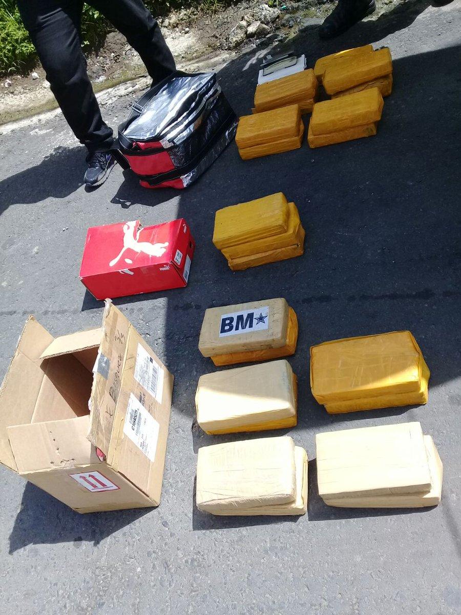 Dos colombianos fueron detenidos al encontrarle varios paquetes de presunta droga en el vehículo, tipo camioneta, donde viajaban.