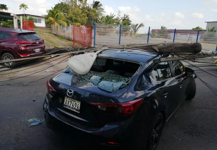 Los daños más severos fueron los de un vehículo, tipo sedán, el cual fue impactado directamente por un poste de tendido eléctrico.