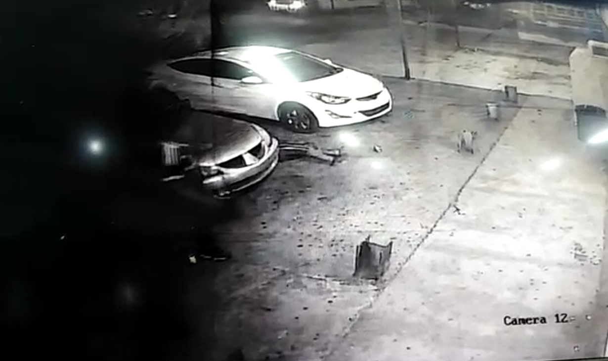 El video, que dura a penas unos segundos, se puede apreciar el vehículo en el que llegó el docente estacionado afuera de la abarrotería.
