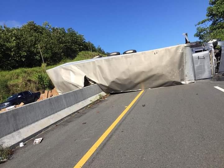 En horas de la mañana de hoy, viernes, un camión articulado se volcó en el sector de Las Vueltas, conocida como Loma del Zorro, en el distrito de David, Chiriquí, ocupando los cuatro paños de la vía Interamericana, confirmaron las autoridades de la Policía de Tránsito.