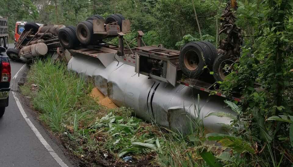 El conductor de un camión articulado que viajaba hacia el corregimiento de Santa Rita en el distrito de La Chorrera, resultó con heridas leves, al volcarse el vehículo.