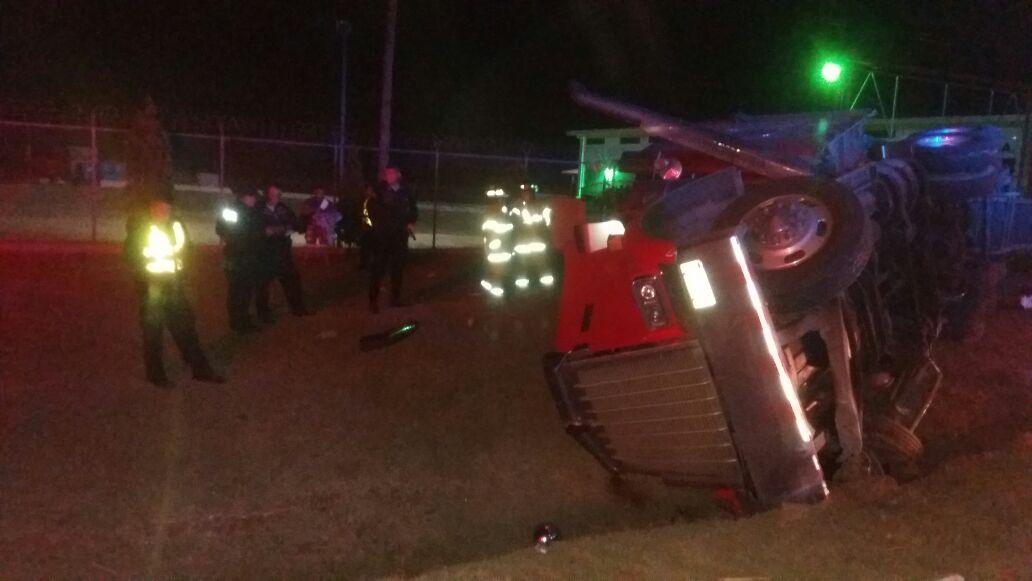 Al lugar llegaron los bomberos de Aguadulce, sin embargo, no hubo heridos; aunque la Policía Nacional debió atender el caso para evitar otro accidente en la vía, ya que la grúa debería mover el pesado vehículo del área.