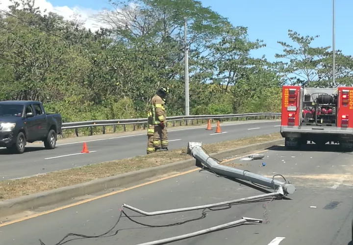 El vehículo chocó y derrumbó un poste que sostenía una luminaria que estaba ubicada en la isleta central de la vía próxima al río Majagua, saliendo de Boquete.