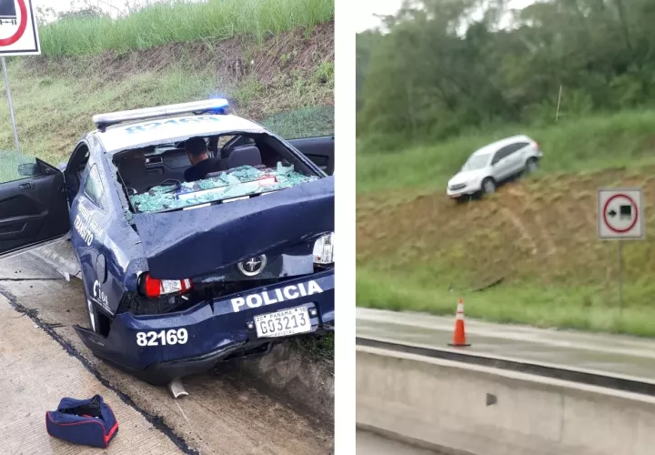Los policías resultaron lesionados la tarde del domingo en la autopista Panamá-Colón, durante un accidente automovilístico.