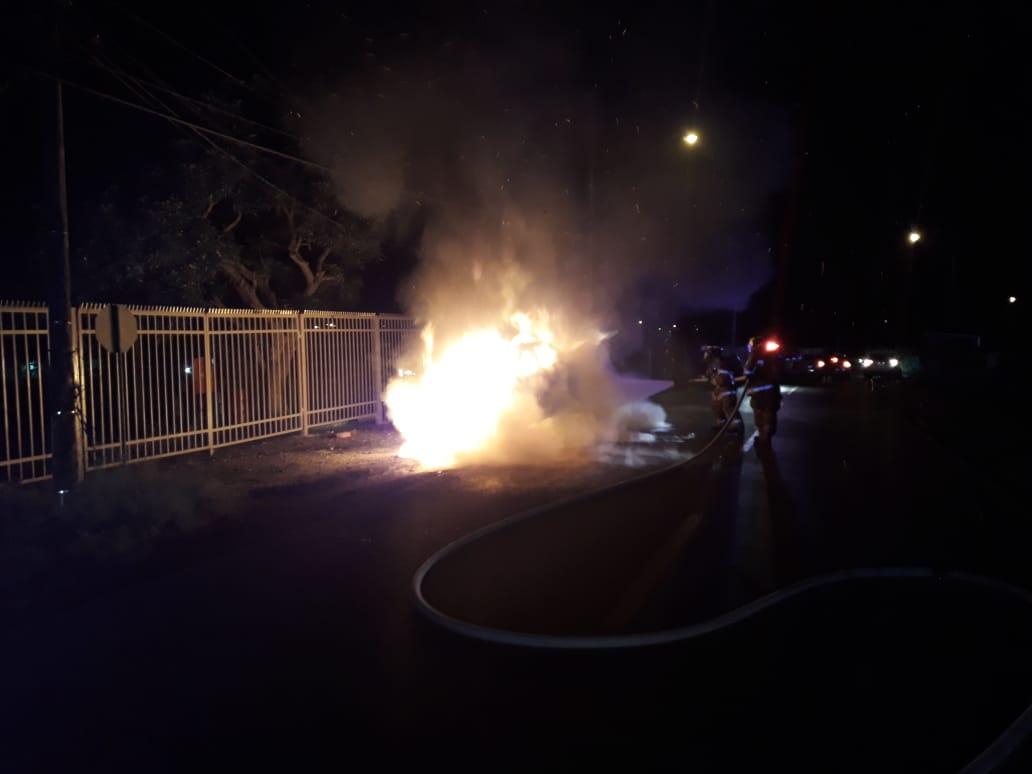 Panamá- Un vehículo fue consumido totalmente por las llamas la noche del miércoles en la vía hacia el corregimiento de Puerto Caimito en La Chorrera.