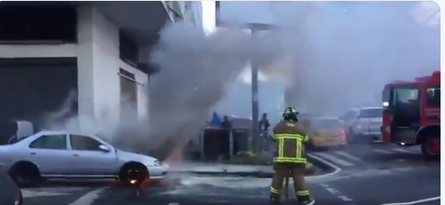 La mañana de hoy, jueves, se altero en la avenida Perú, a la altura de la calle 32, cerca al edificio central de la Lotería Nacional de Beneficencia (LNB), con la emergencia de un auto incendiado.