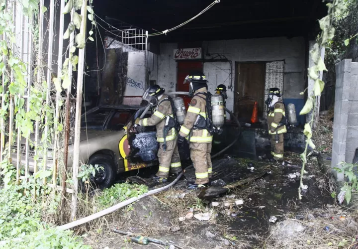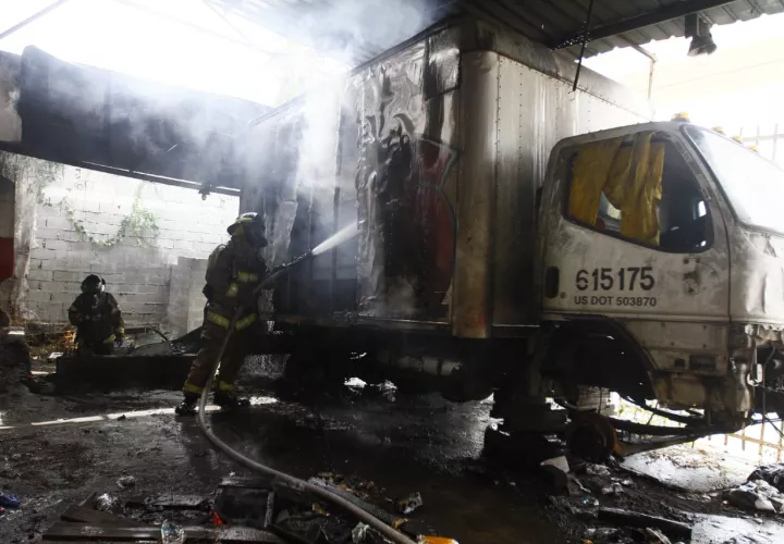 Los "camisas rojas" del cuartel de San Miguelito combatieron el fuego hasta contralarlo. Se presume que el siniestro se originó en uno de los dos vehículos que se mantienen en el local.  El auto, tipo sedán,  y el camión fueron afectados por las llamas.