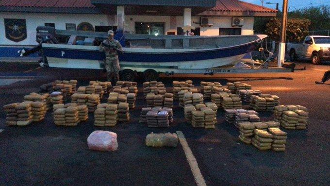 En el marco de la operación Alfil y en coordinación con Centro Regional de Operaciones Aeronavales (CROAN) interdicta una lancha rápida con la presunta droga y los tres detenidos.