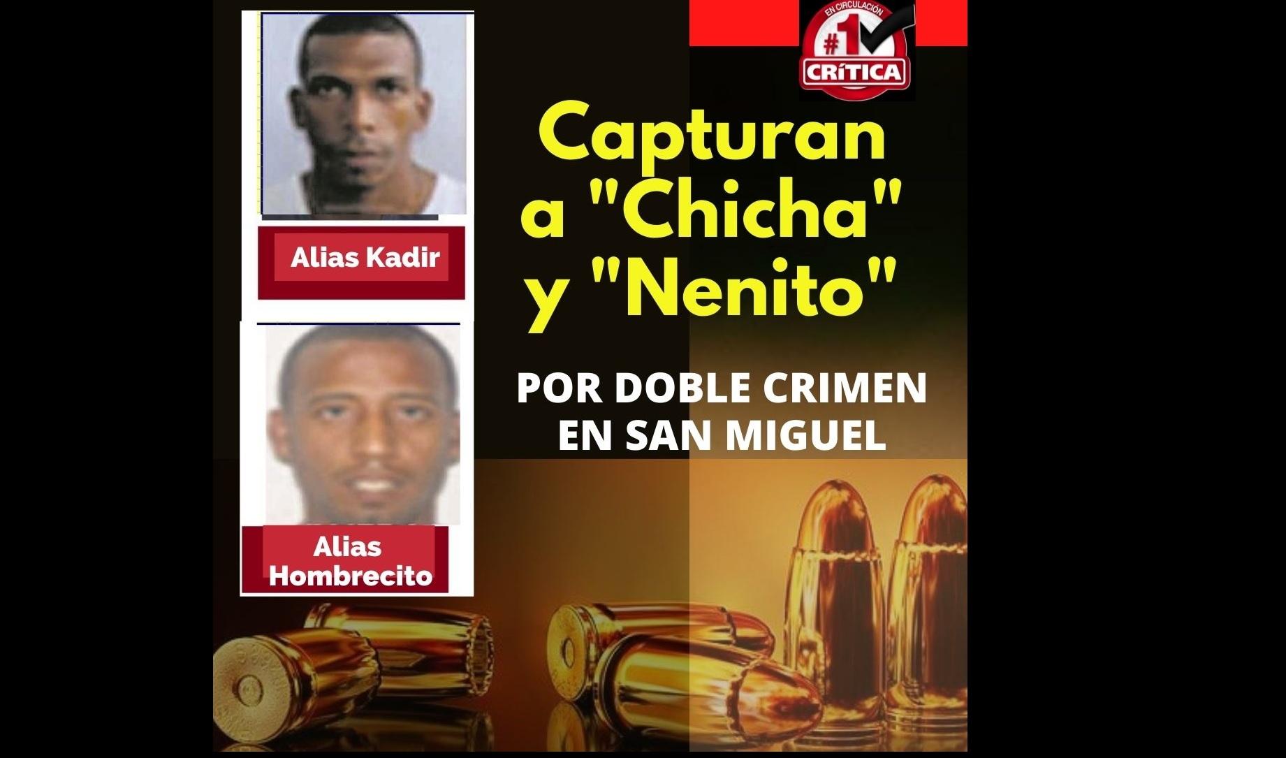 Dos hombres identificados como alias "Chicha" y alias "Nenito" fueron capturados hoy, por su presunta relación en los asesinatos ocurridos este domingo en la comunidad de San Miguel, en el archipiélago de Las Perlas.