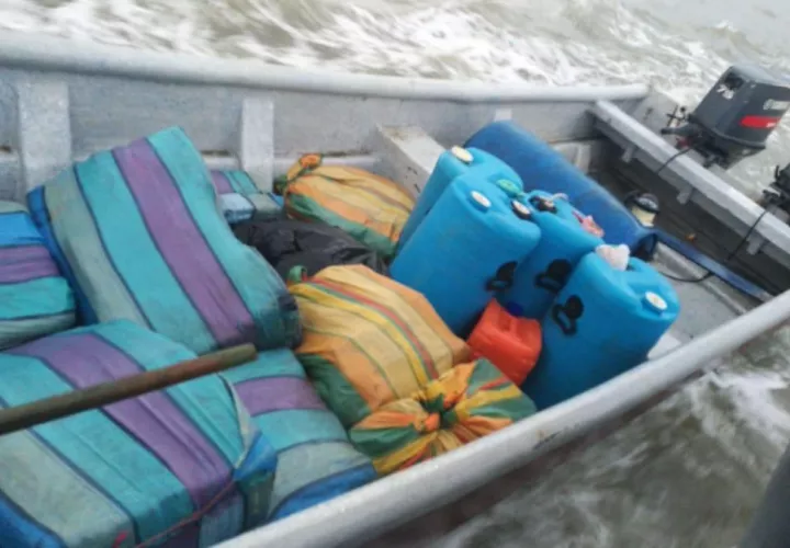 Unidades del Servicio Nacional Aeronaval dieron persecución a la lancha con los dos tripulantes, donde se detectó al menos unos 15 bultos con el contenido de los paquetes de la sustancia ilícita.