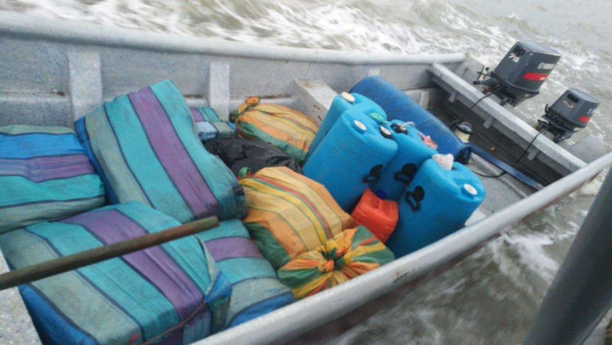 Unidades del Servicio Nacional Aeronaval dieron persecución a la lancha con los dos tripulantes, donde se detectó al menos unos 15 bultos con el contenido de los paquetes de la sustancia ilícita.