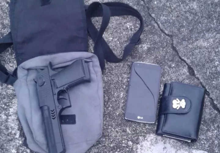 Informes policiales destacan que el sospechoso está vinculado a ocho robos. Durante la revisión del sujeto se le detectó una bolsa con el siguiente contenido: un arma, un celular y cartera (valet) de mujer.