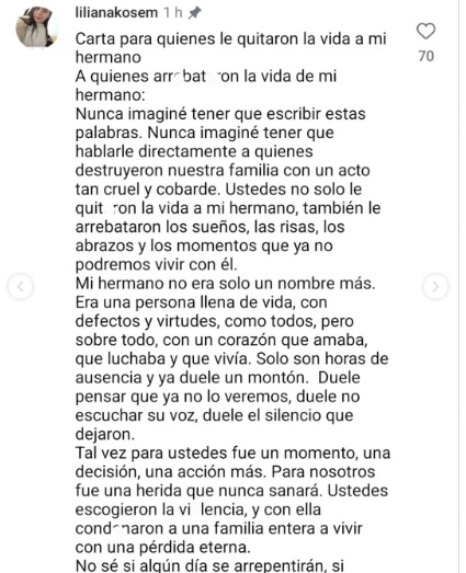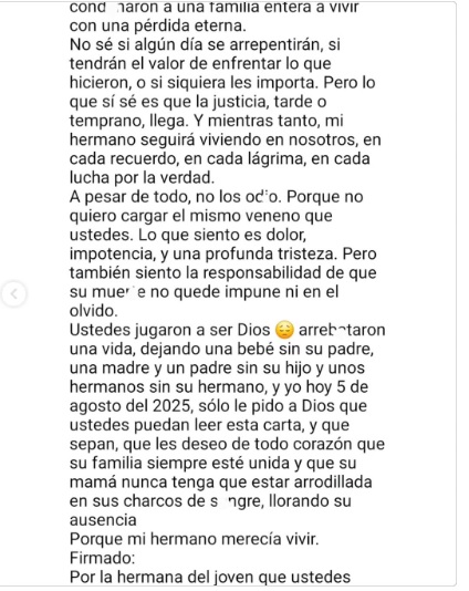 Las palabras han tocado los corazones de miles en redes sociales. Y mientras la Policía y el Ministerio Público investigan el crimen —que no descartan como un ajuste de cuentas—, la carta se ha convertido en un grito de dolor, justicia y memoria.