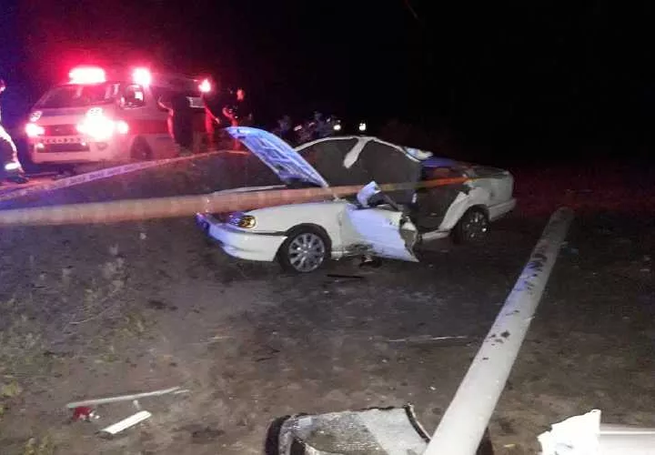 Un muerto y dos heridos dejó un accidente de tránsito la madrugada de este domingo, en la vía hacia El Salado, en Aguadulce, provincia de Coclé. El auto Nissan Sentra blanco se estrelló contra un poste de tendido eléctrico, que al partirse cayó sobre el vehículo, aplastando y atrapando a sus ocupantes.