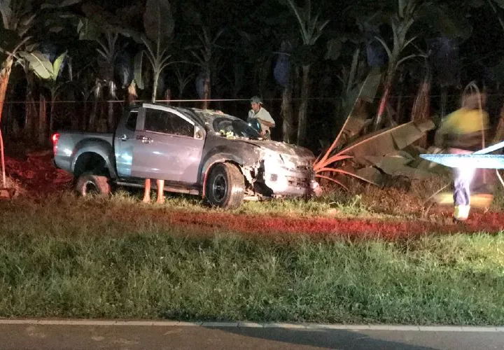 El suceso se registró entre dos vehículos. Según los primeros informes, el conductor del vehículo “pick up” se salió de la vía y chocó contra tallos de banano al intentar esquivar otro auto que lo sorprendió en su carril. De no haber realizado la maniobra, el impacto de ambos vehículos hubiera sido de forma frontal.