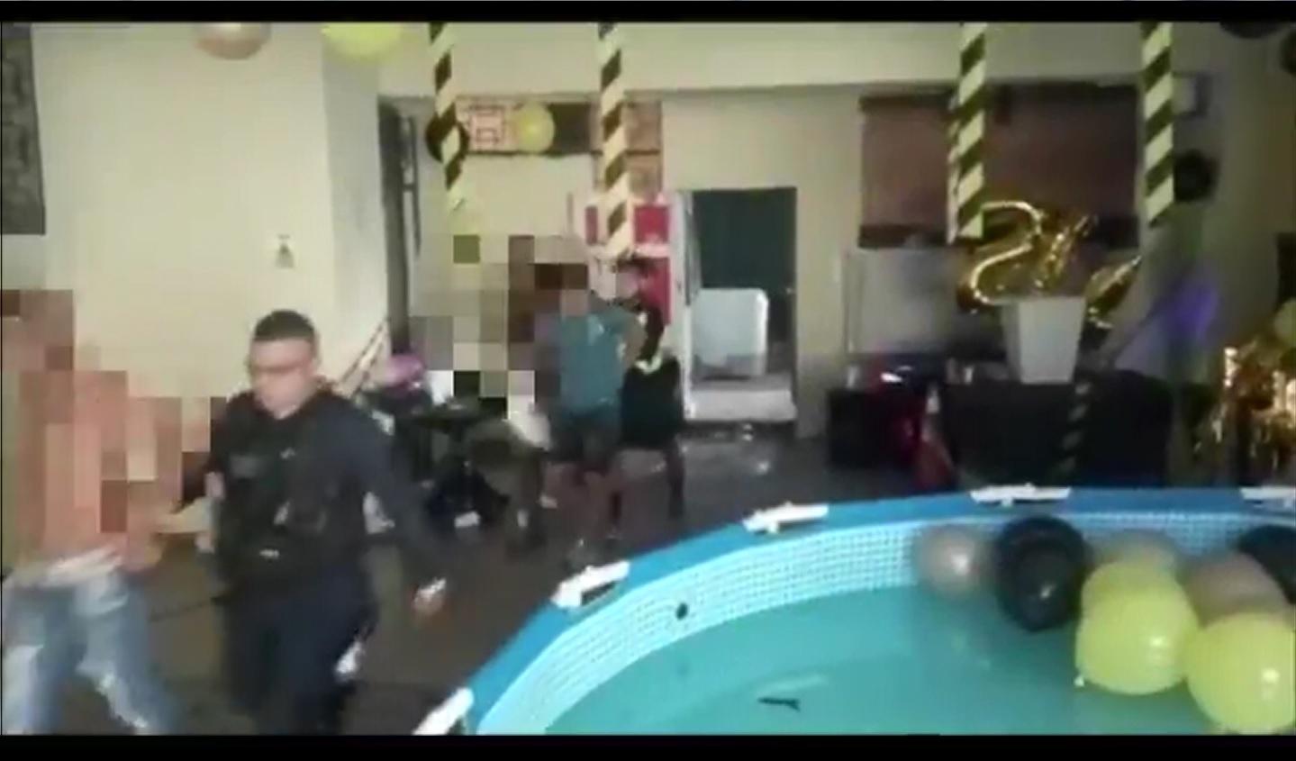 En un video divulgado por la policía se puede apreciar que en la terraza de la vivienda allanada, los infractores habían instalado, además de la piscina, globos y guirnaldas como decoración, camas y tenían bebidas alcohólicas. Así como también se apreciaron varias mochilas, por lo que se presume pasarían la noche o el fin de semana en el lugar.