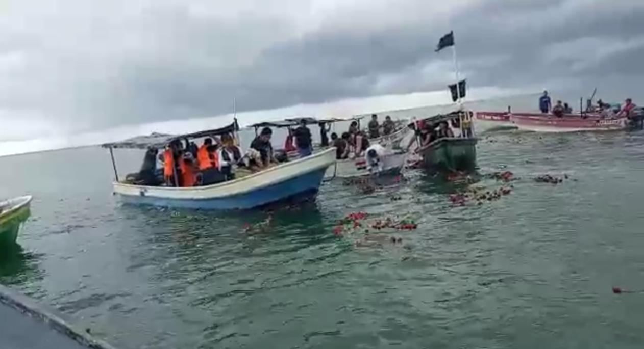 Familiares de Lucick se desplazaron en lanchas arrojando al mar pétalos de rosa como despedida a este productor quien tomo la difícil decisión de quitarse la vida el pasado 22 de mayo en el sector de Tierras Altas en Chiriquí.