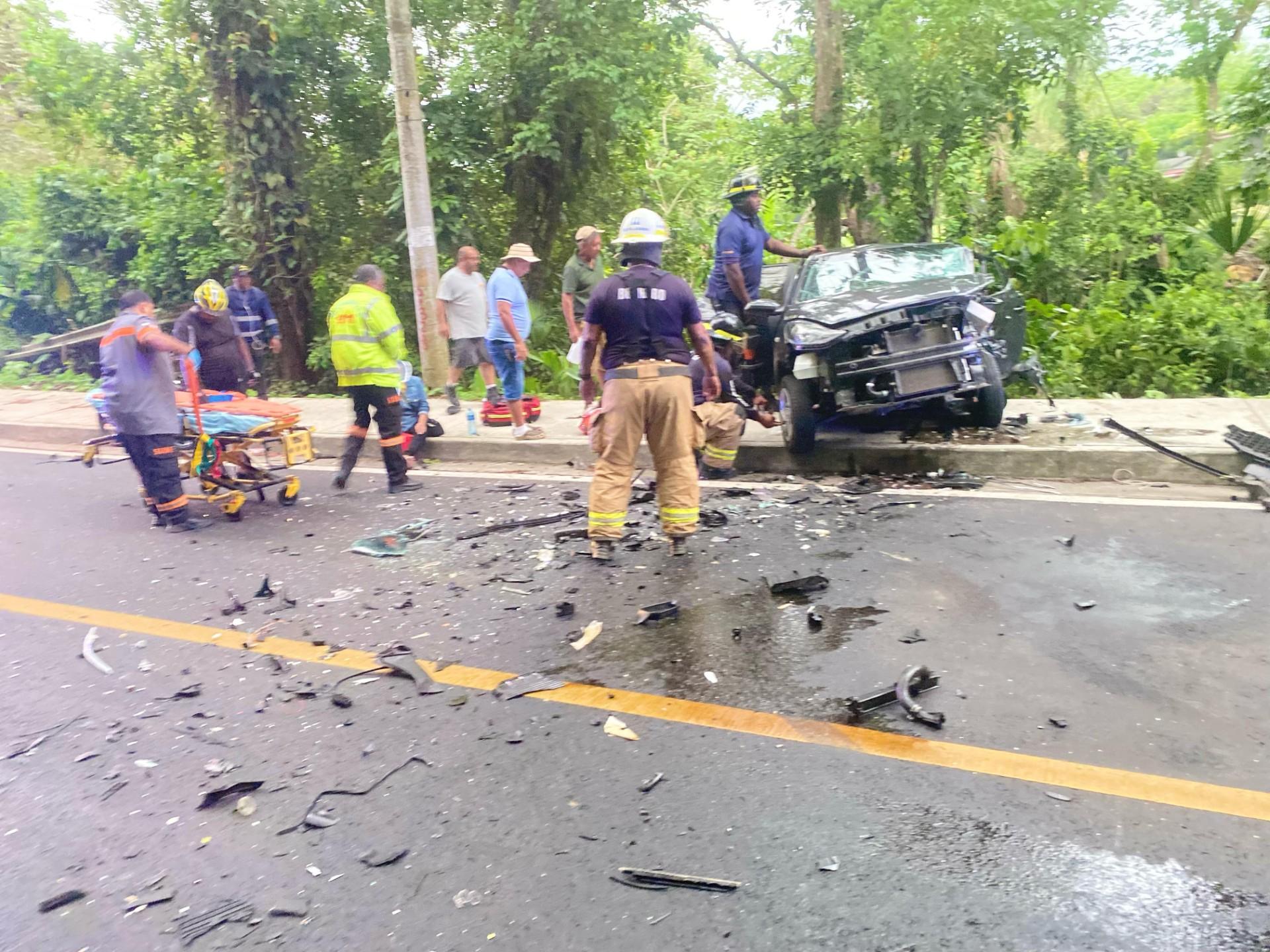Cinco personas resultaron lesionadas producto de un accidente vehicular en la vía conocida como “Diversión” que comunica el área de los Cuatro Altos hacia la comunidad de Margarita en las afueras de la ciudad de Colón, la mañana de este sábado 12 de abril.