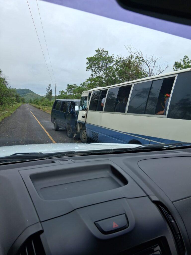 Según reportes preliminares, un microbús azul de una empresa privada invadió el carril contrario y chocó de frente contra un bus tipo coaster de la ruta Alto La Estancia–San Juan de Dios–Antón, el cual se dirigía hacia San Juan de Dios.