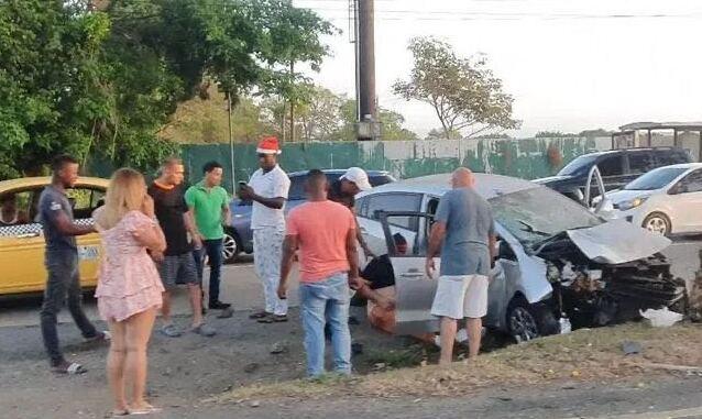 Ayer, en horas de la tarde, el conductor de un taxi, marca Picanto, quedó encima de uno de los jerséis que divide los carriles vehiculares en la vía Domingo Díaz, a la altura del puente de la Roosevelt.