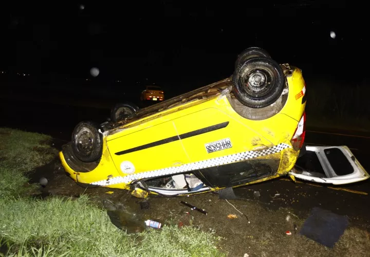 Cinco ocupantes de un vehículo taxi marca Hyundai I30 con registro 8RI-15838, resultaron con golpes leves, luego de volcarse en la vía Panamericana, frente a plaza Canaima, próximo a la barriada San Juan, del corregimiento Pacora.