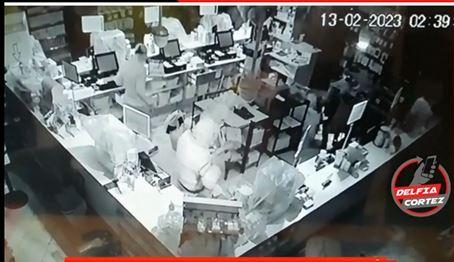 En un video que se ha viralizado en las redes sociales, se puede ver claramente a los asaltantes colocando los artículos en maletines y huyendo del lugar rápidamente. En el video se observa el día y la hora que fue grabada la escena.. 13 de febrero del 2023 a las 2:39 de la madrugada.