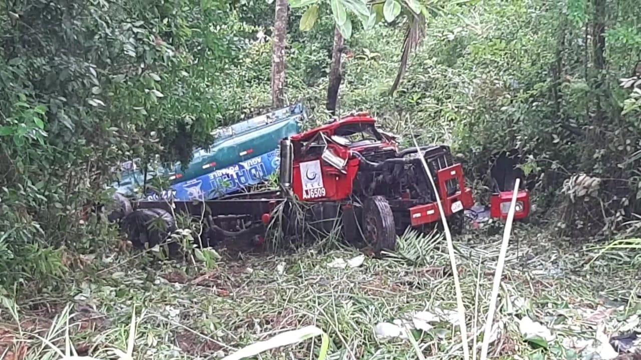Cisterna cargado con agua cae en barranco en Sabanitas