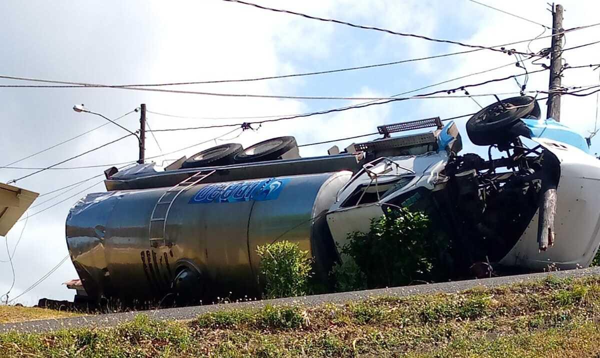 Un camión cisterna que carga agua para el IDAAN en la provincia de Colón, se volteó la mañana de este lunes, en la comunidad "Lo Nuestro" en el corregimiento de Sabanitas.
