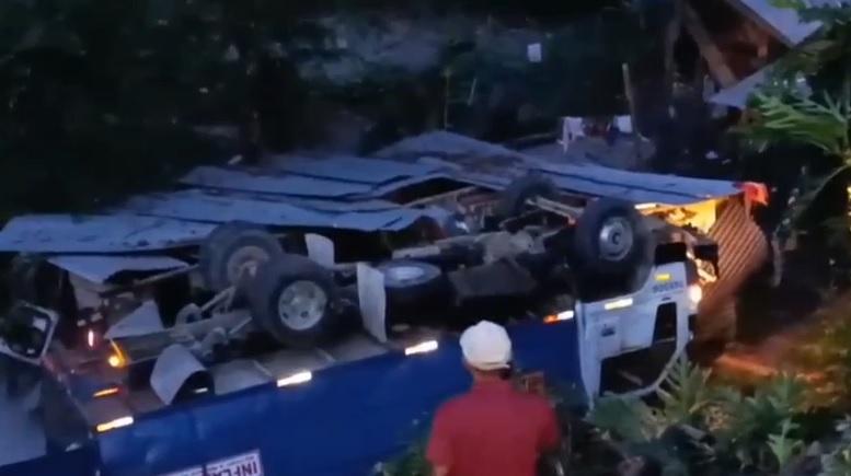 El accidente ocurrió cuando el conductor perdió el control del pesado vehículo al tomar una curva.
