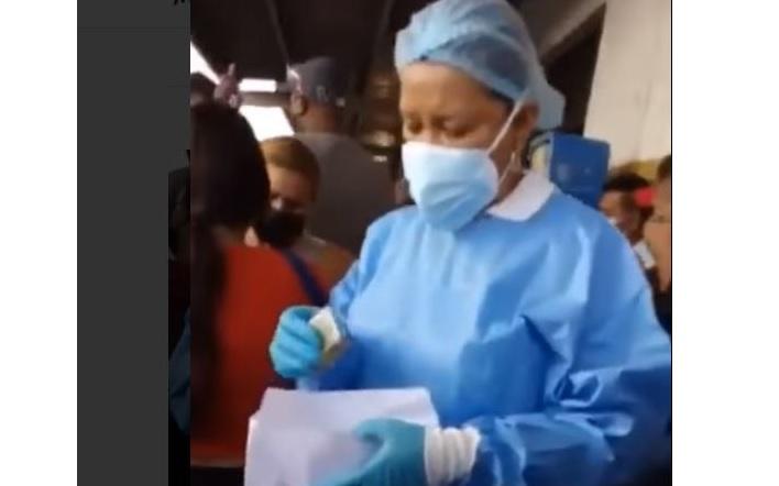 Las imágenes dejan ver el descontrol del personal de Salud que se limita a cobrar sin anotar nombres de quienes hacen efectivo el pago. Tampoco entregan recibos por el monto recibido. Solo indican: "Ahorita le entrego el tiquete"