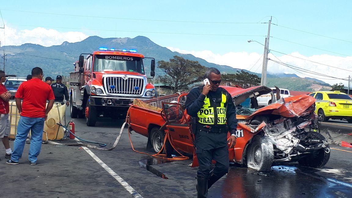 Según datos preliminares, el conductor del auto de los bomberos ingresó a la vía principal sorprendiéndose de frente con el bus que bajaba a la ciudad de David por el carril derecho.