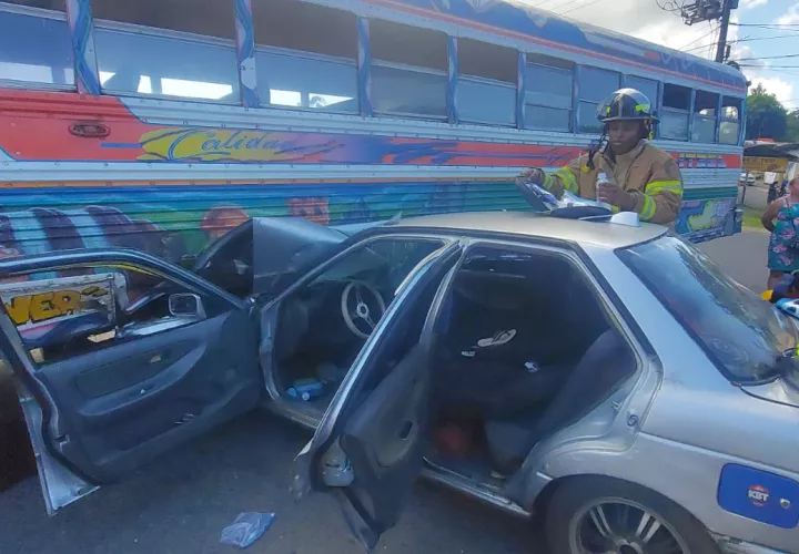 En este accidente se vieron involucrados un bus de la Ruta Colón-Buena Vista y un sedán color gris.