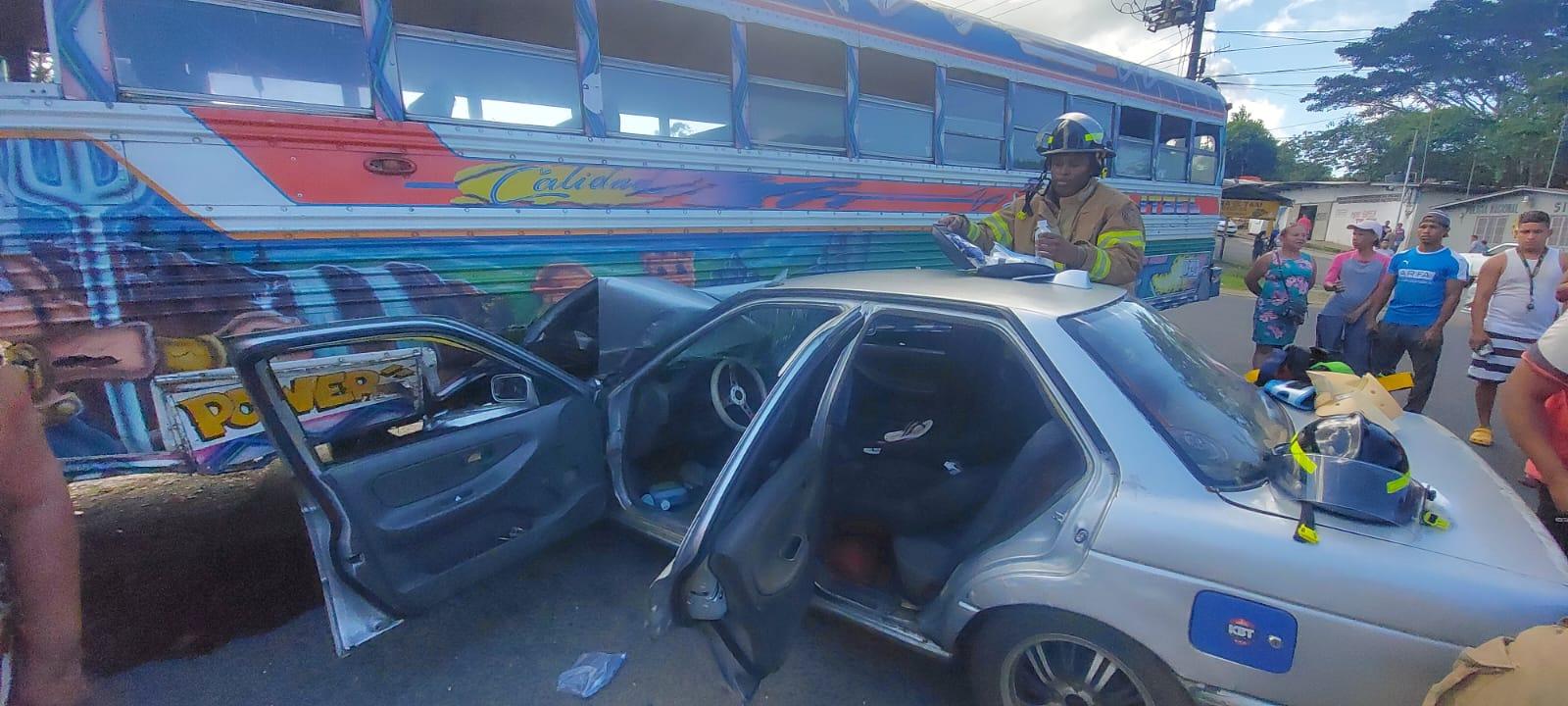 En este accidente se vieron involucrados un bus de la Ruta Colón-Buena Vista y un sedán color gris.