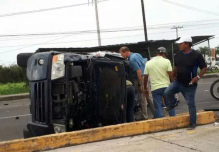 Aparentemente, el vehículo, una camioneta, colisionó primero a un “pick-up” color blanco, por lo cual el conductor perdió el control y se volcó. Ambos autos quedaron en los carriles de la transitada vía.