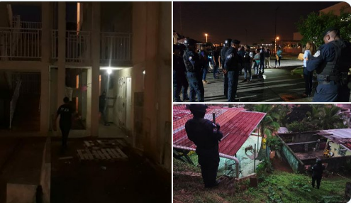 Más de 100 agentes policiales en compañía de funcionarios MP desarrollan diligencias de allanamientos en casas, barracas y revisan cada rincón.