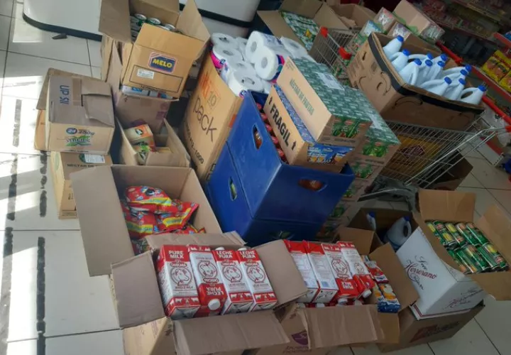 Entre las mercancías habían enlatados, jugos, leche y artículos de aseo.
