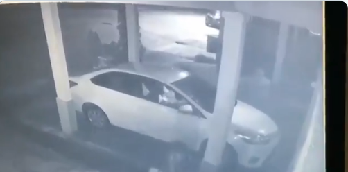 Un video grabado a través de una cámara de seguridad captó cómo los dos asaltantes se bajan de un vehículo y sigilosamente se acercaron a la pareja que estaban en el vehículo estacionado, y los amenazan con el arma. El hombre y la mujer no tuvieron otra opción que salir del coche y entregárselo a los delincuentes.