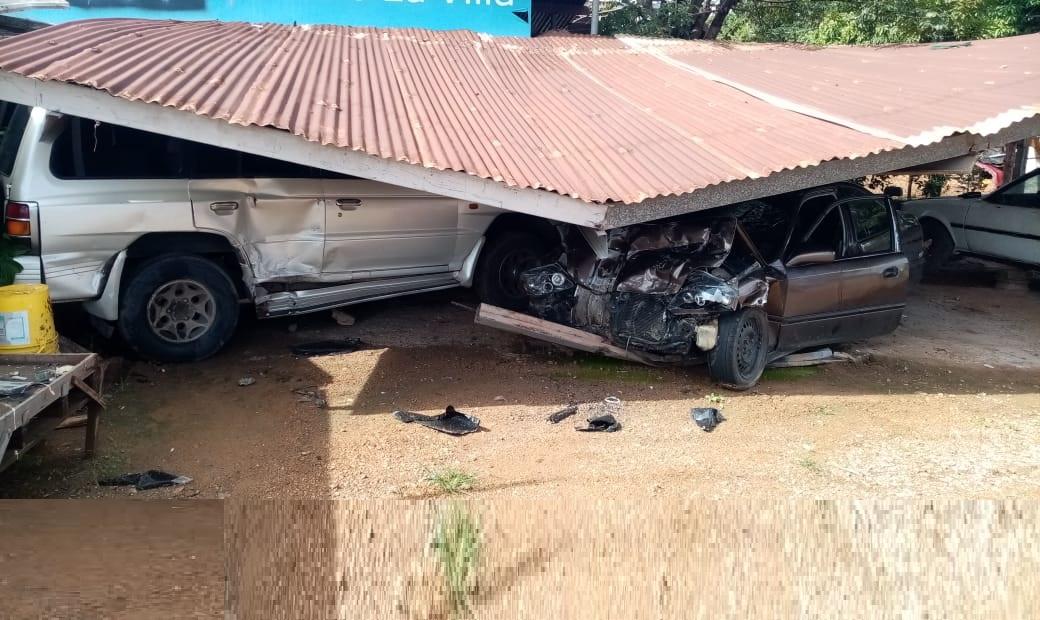 Producto del hecho de tránsito los vehículos que estaban estacionados terminaron con daños de consideración en sus carrocerías ya que además ser colisionados el techo de un alero que los cubría les cayó encima, por lo que el conductor involucrado deberá hacer frente a la reparación de los mismos.