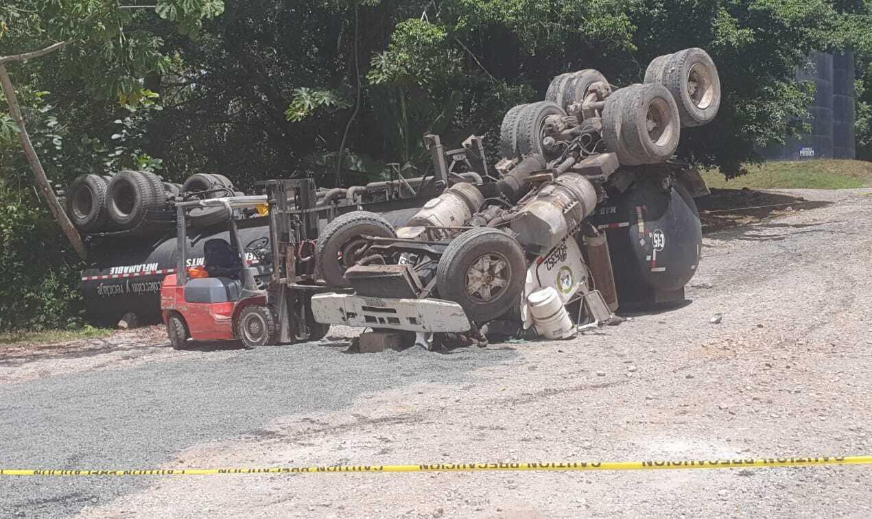 El conductor de un camión cisterna murió al volcarse dentro de los predios de una empresa dedicada al reciclaje de aceite en el sector del Giral, corregimiento de Buena Vista, provincia de Colón.