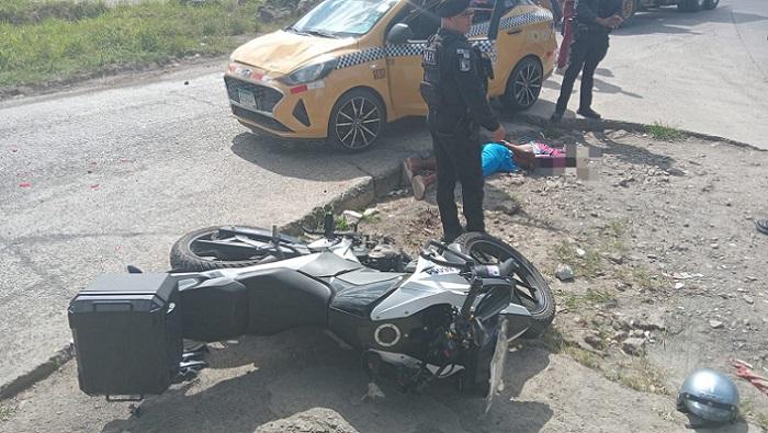 Fue necesaria la intervención de otras unidades policiales, las cuales lograron detener el taxi y aprehender al conductor, que segundos antes colisionó la motocicleta en la que se desplazaban, la cual terminó con daños.