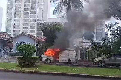 Conductor sale a tiempo de vehículo en llamas en avenida Balboa